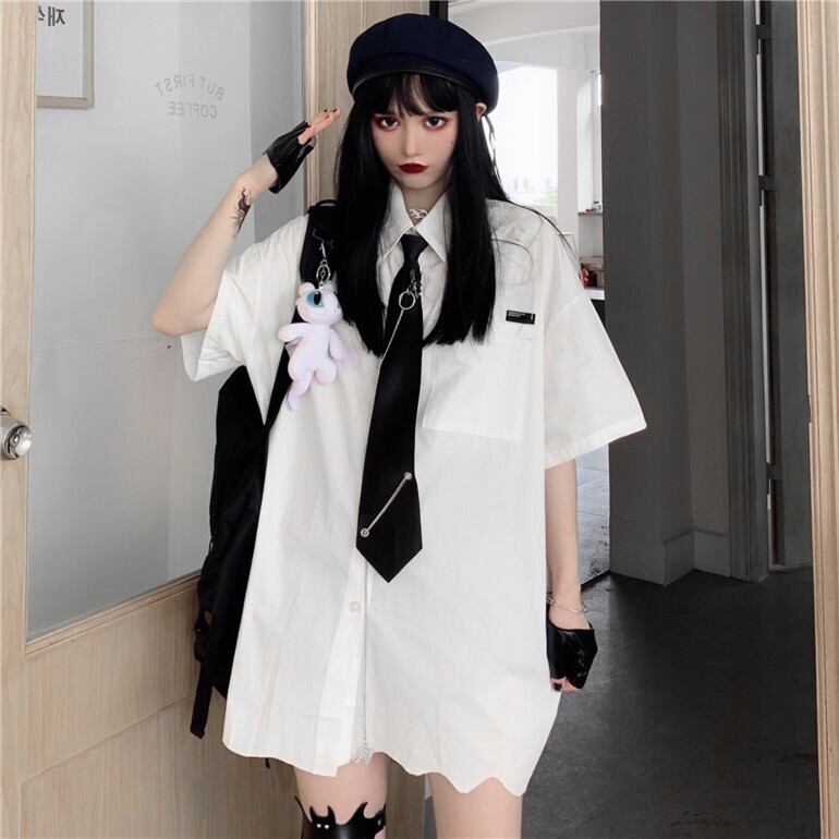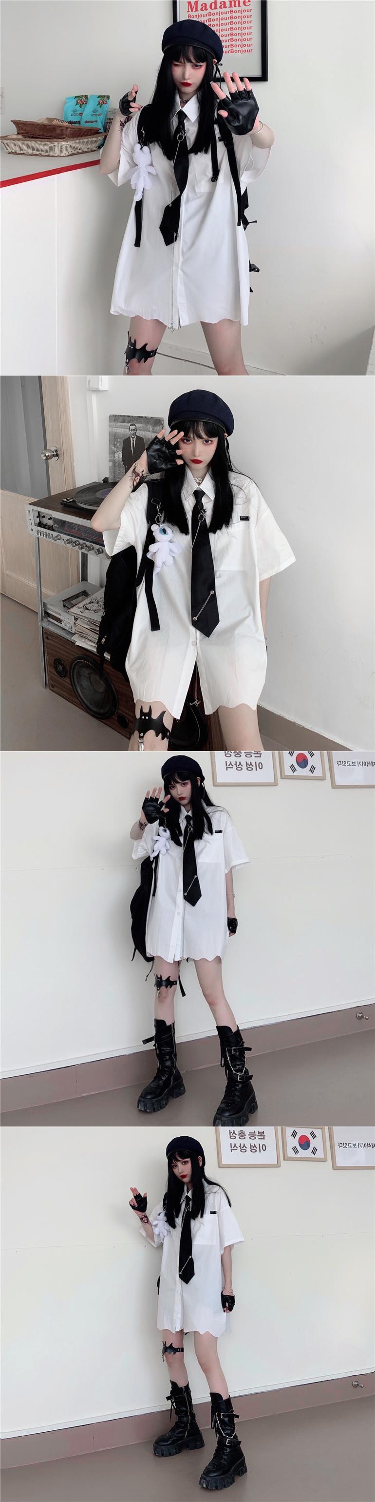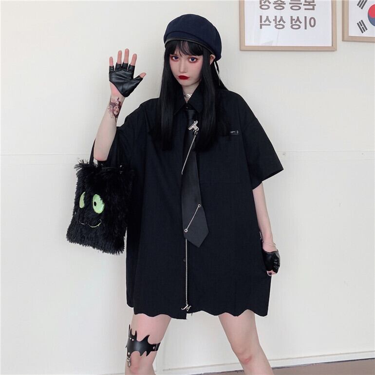 サマーダークシャツ ルーズブラックトップス 夏物 Brother_is_Style39505620508