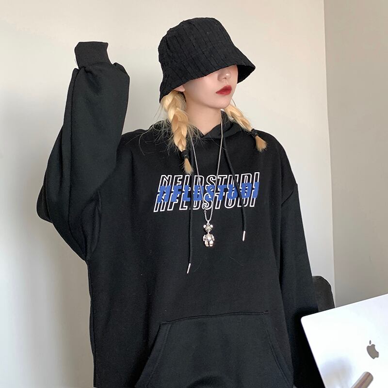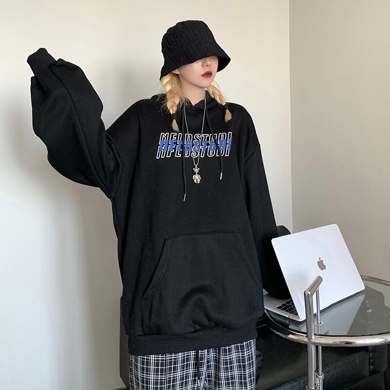 オータムウィンタースタイルフードセーター ルーズベルベットブラックジャケット かわいい 秋物 冬物 Brother_is_Style70546755659