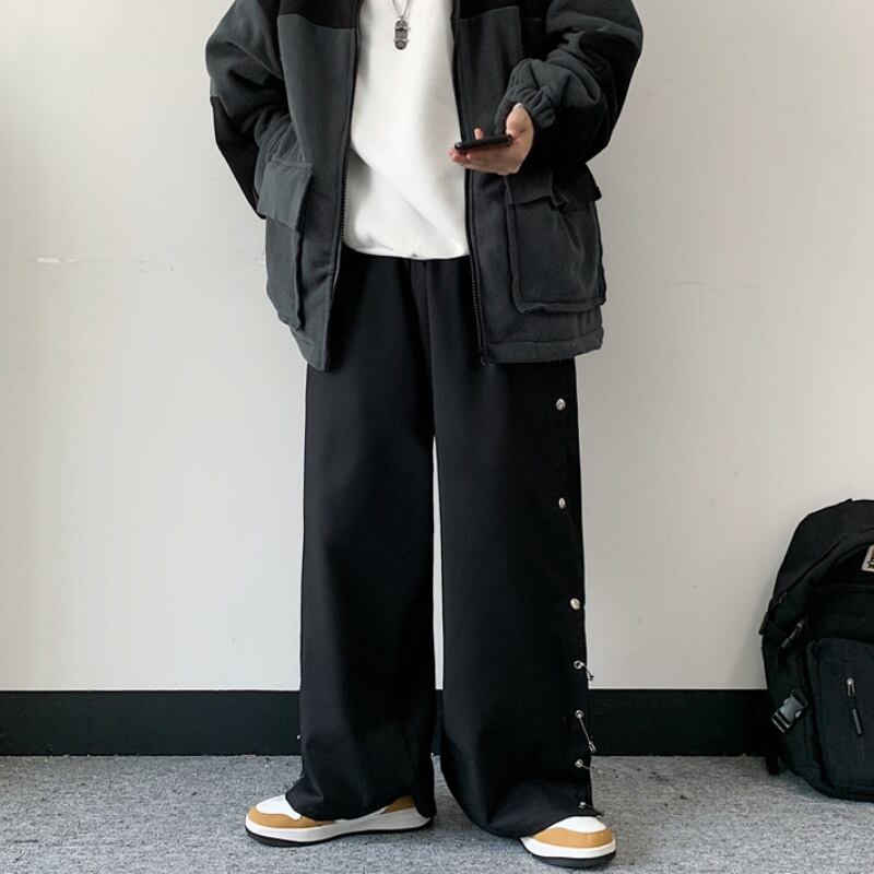 パンツ オータムウィンタールーズブラックハイウェストカジュアル レトロ ストリート 秋物 冬物 Brother_is_Style56800533817