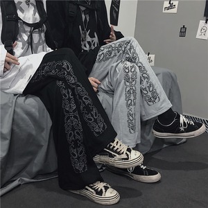 パンツ オータムウィンタースタイルブラックFlowerデザイン ワイドレッグルーズハイウェストウェストカジュアル かわいい 秋物 冬物 ワイドパンツ フラワーデザイン Brother_is_Style62346845643