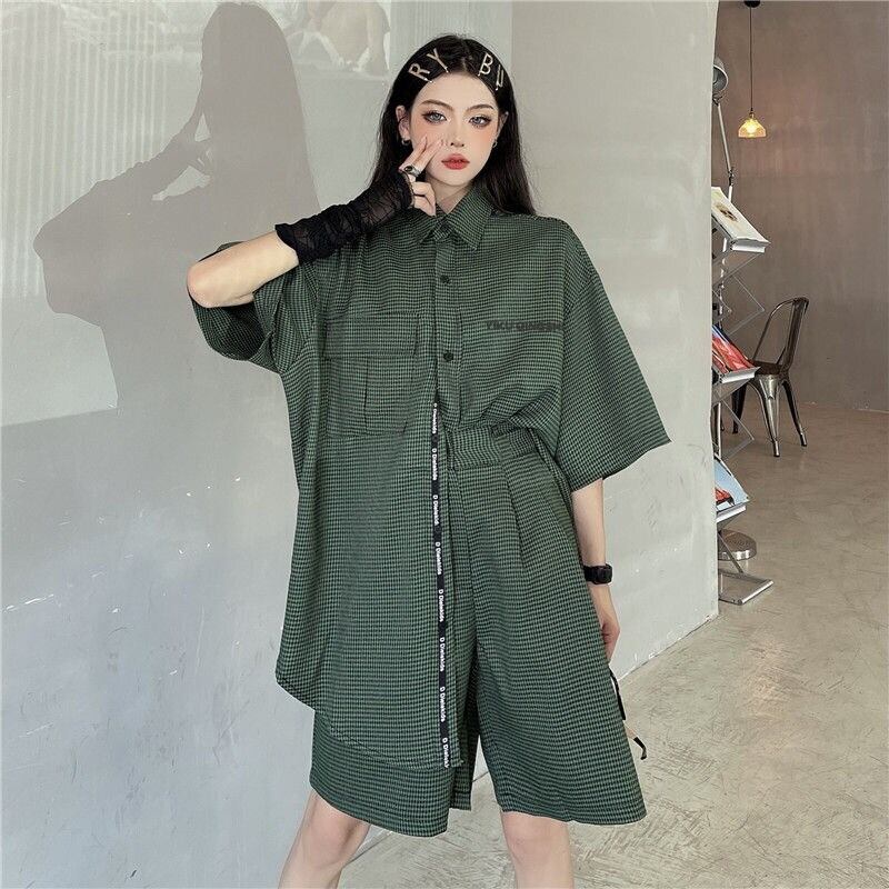 サマー格子柄シャツ カジュアルショーツ 夏物 ブルマー Brother_is_Style93586977045