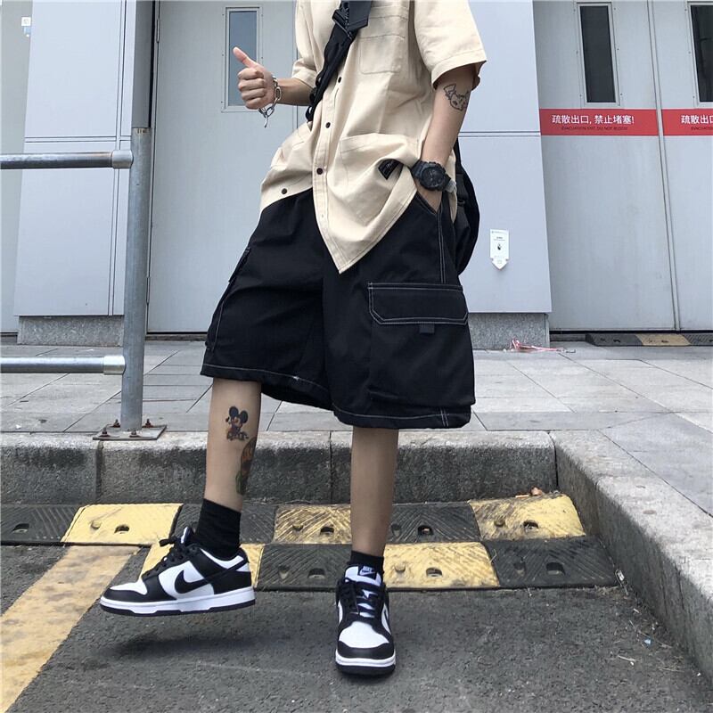 ブラックパンツ サマースタンダードオーバーオール カジュアルルーズハイウェストウェストショーツ レトロ 夏物 ブルマー Brother_is_Style13319550126