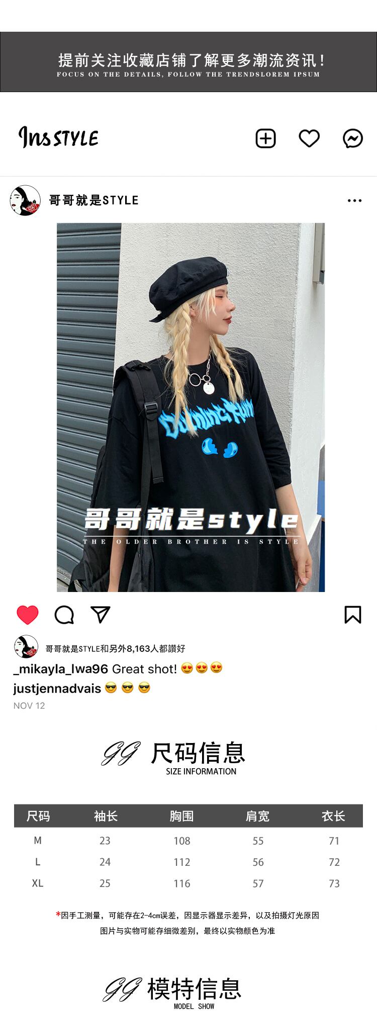 サマートップス ルーズブラックTシャツ ストリート 夏物 Brother_is_Style76118760413