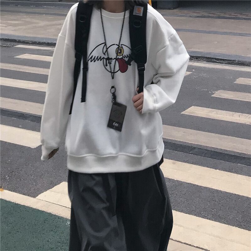 オータムウィンタースタンダードルーズホワイトプルオーバー セーター ベルベットトップス レディース レトロ 秋物 冬物 Brother_is_Style15835016894