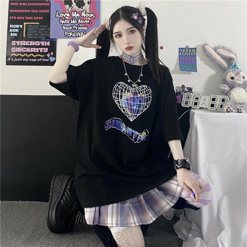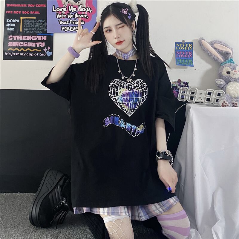 Tシャツ サマープリントルーズトップス コットン 大人ガーリー スウィート キュート カジュアル 夏物 ピュア Brother_is_Style4199558872