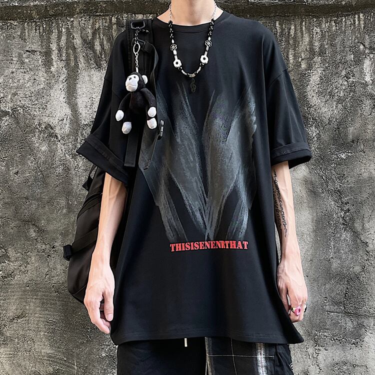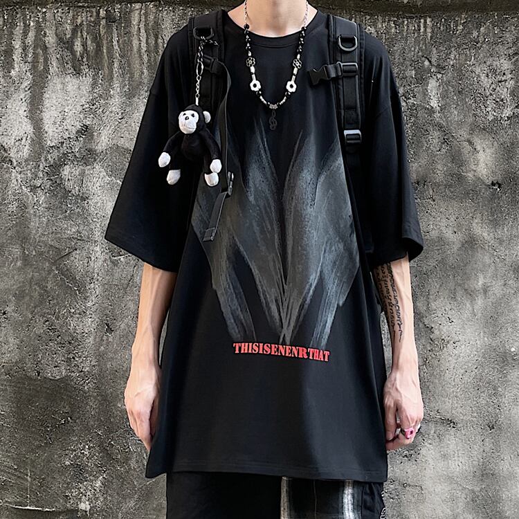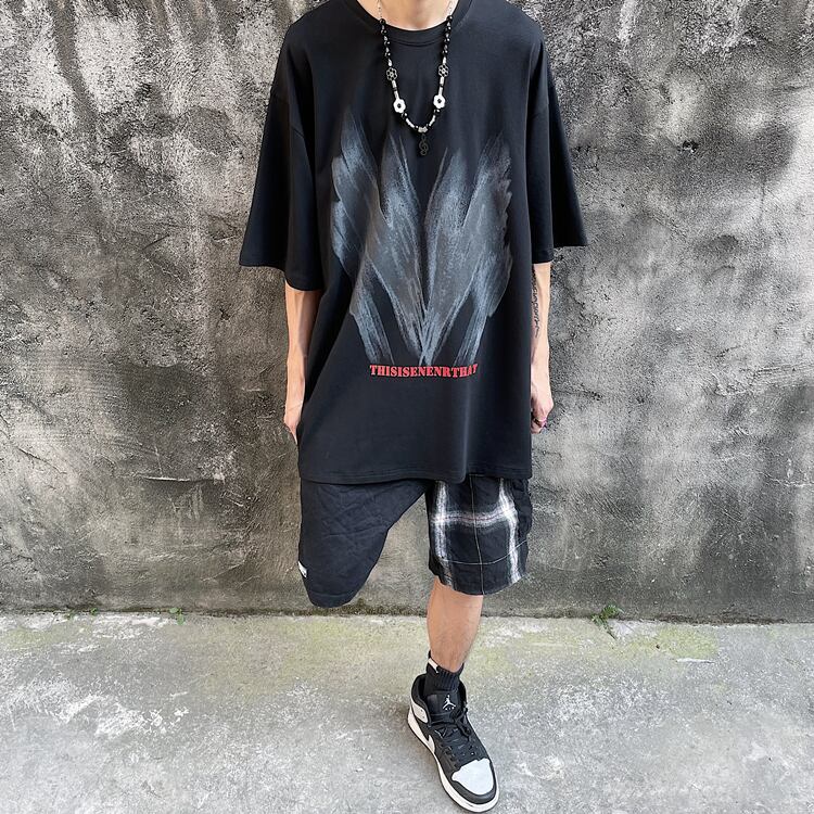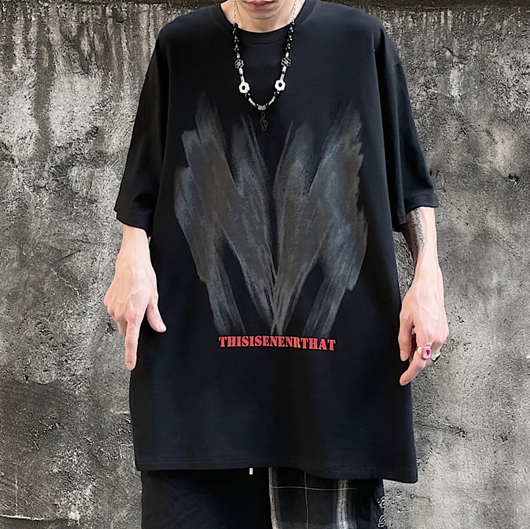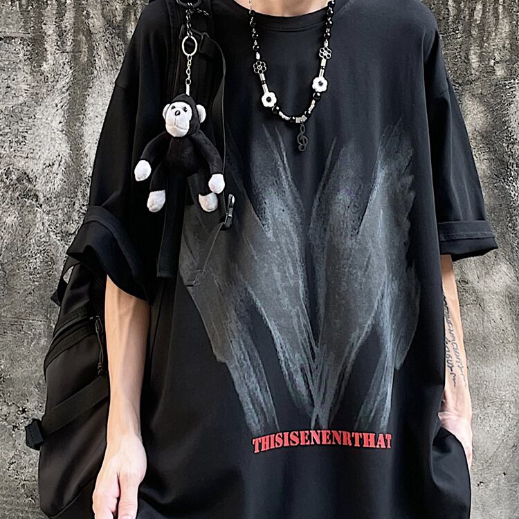 Tシャツ サマーダークプリントルーズトップス ストリート 夏物 Brother_is_Style90005969017