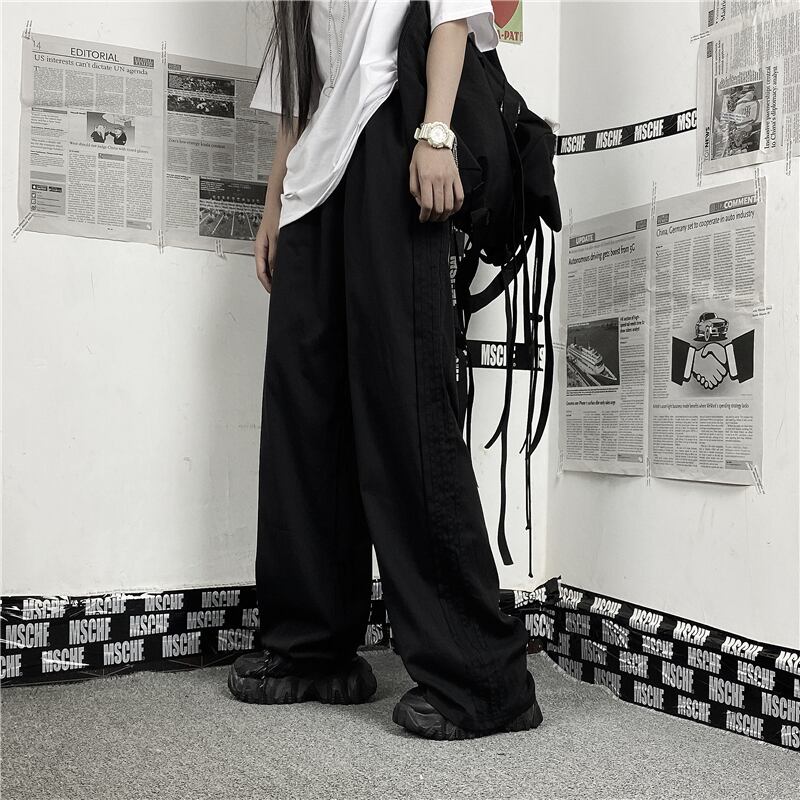 パンツ サマー薄手ルーズウェストスリムワイドレッグブラック ストリート 夏物 ワイドパンツ Brother_is_Style10076132271