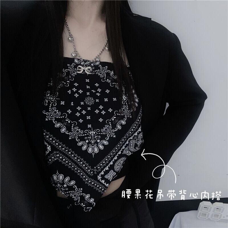 サマースタンダードFlowerデザイン ブラックトップス レトロ 夏物 フラワーデザイン Brother_is_Style58581685651