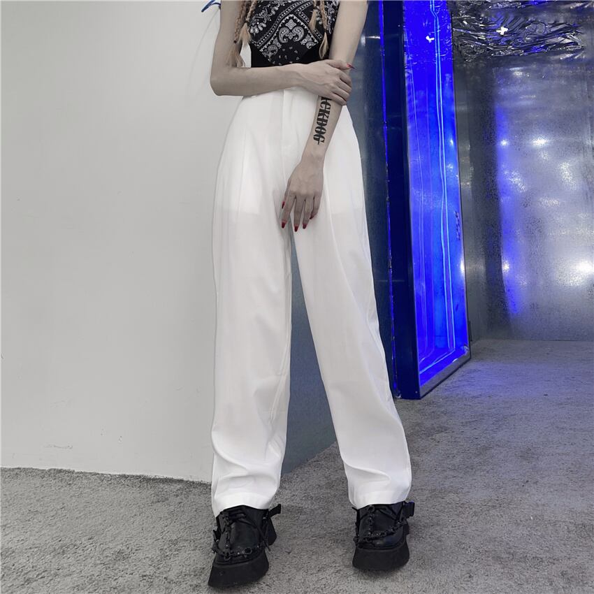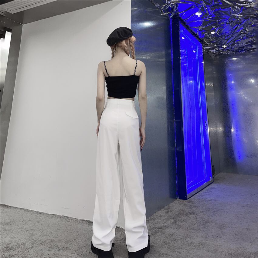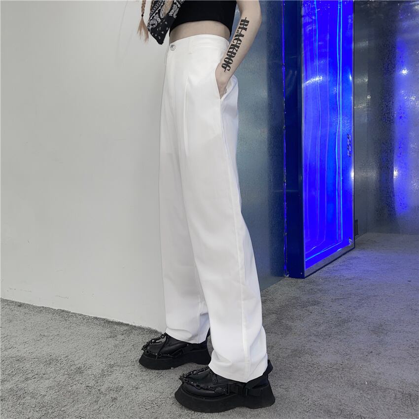 ホワイトパンツ サマーカジュアルルーズハイウェストウェストワイドレッグ ストリート 夏物 ワイドパンツ Brother_is_Style50552290362