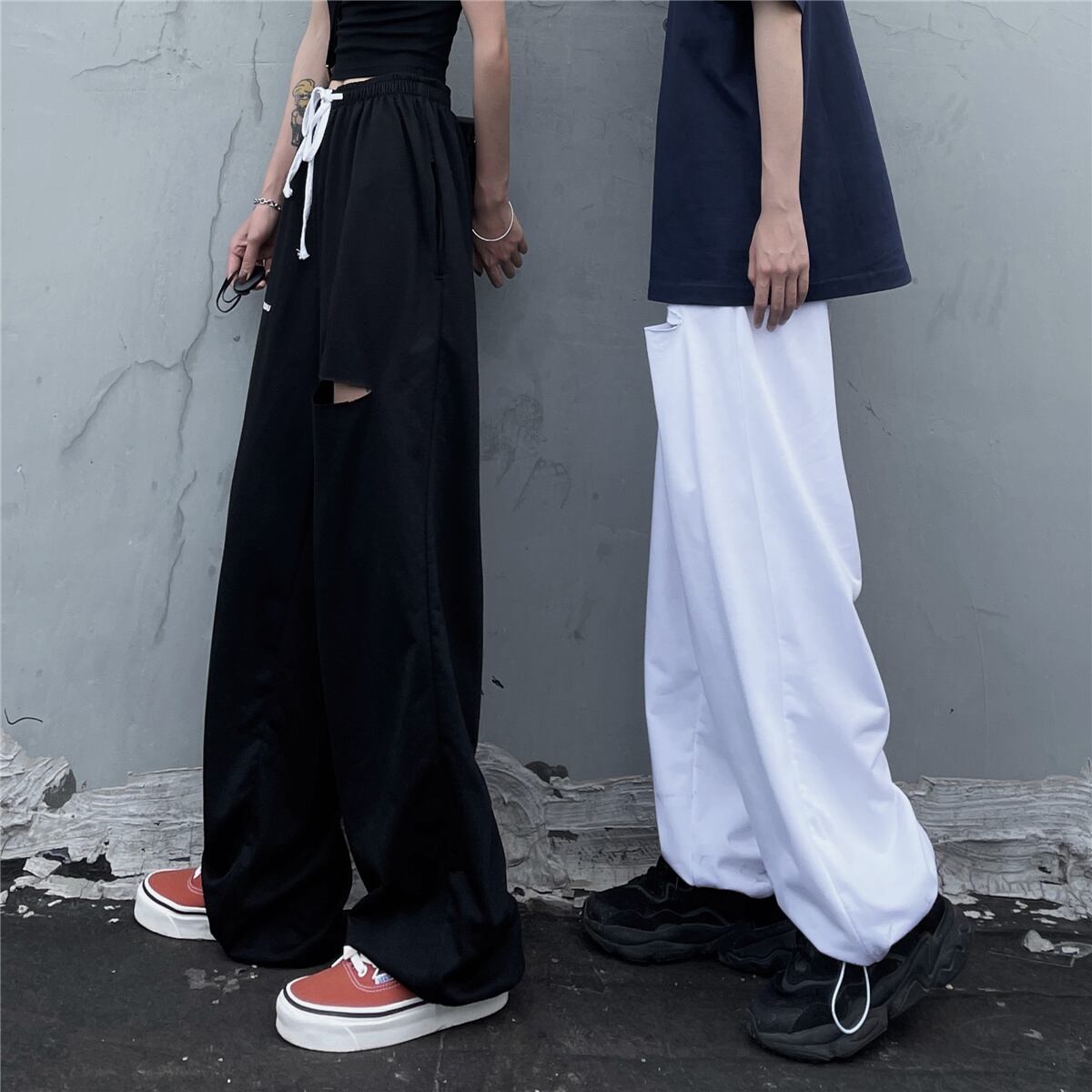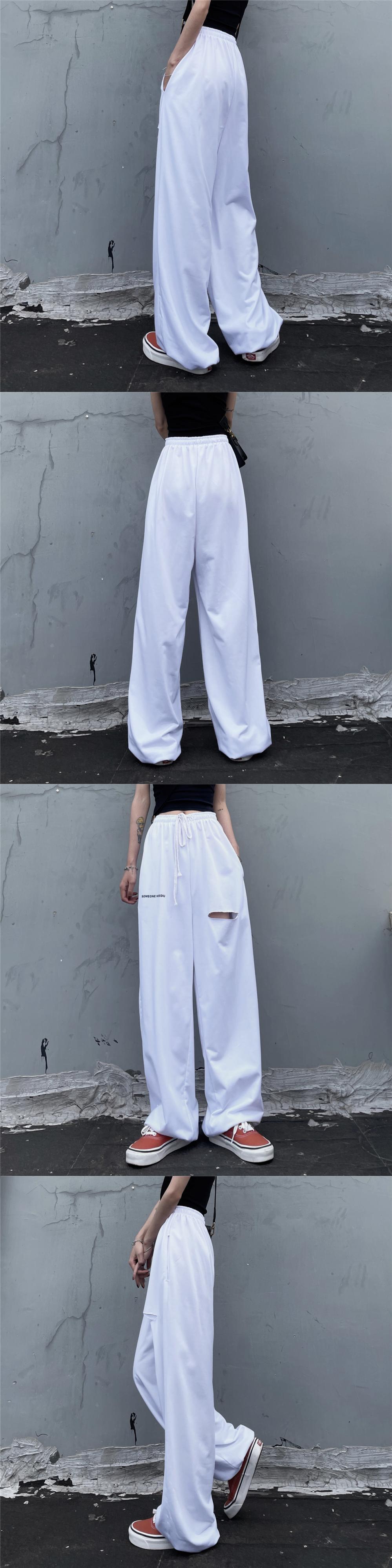 パンツ サマーホワイトカジュアルルーズハイウェストウェストワイドレッグ ストリート 夏物 ワイドパンツ Brother_is_Style62833504875