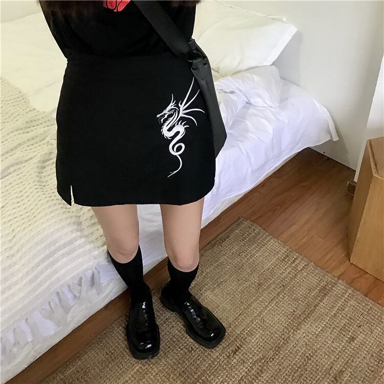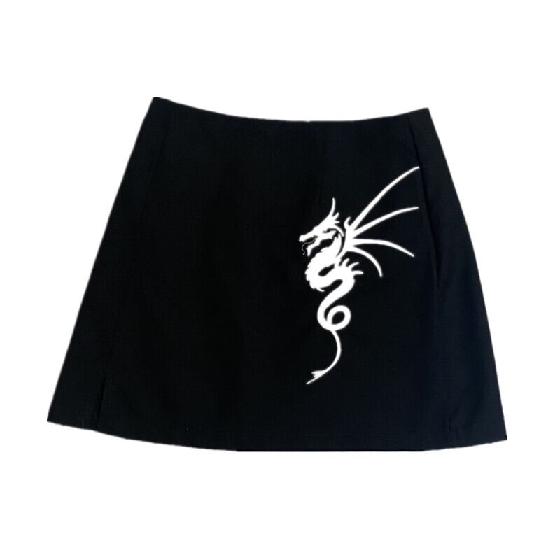 スカート サマーブラックスリットハイウェストウェスト薄手Aラインショート 大人ガーリー スウィート キュート カジュアル 夏物 Brother_is_Style50871136492
