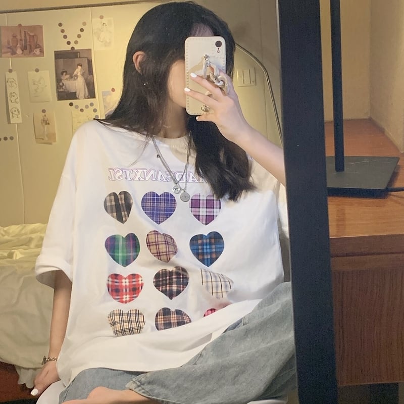 Tシャツ サマースタンダード格子柄ルーズトップス レトロ 夏物 Brother_is_Style12034422829