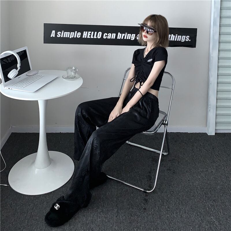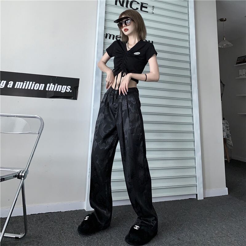 パンツ サマー薄手ブラックルーズハイウェストウェストワイドレッグカジュアル 夏物 ワイドパンツ Brother_is_Style46452092183