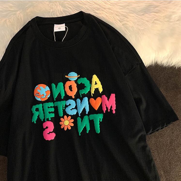 サマーTシャツ ルーズブラックトップス 夏物 Brother_is_Style25805933198