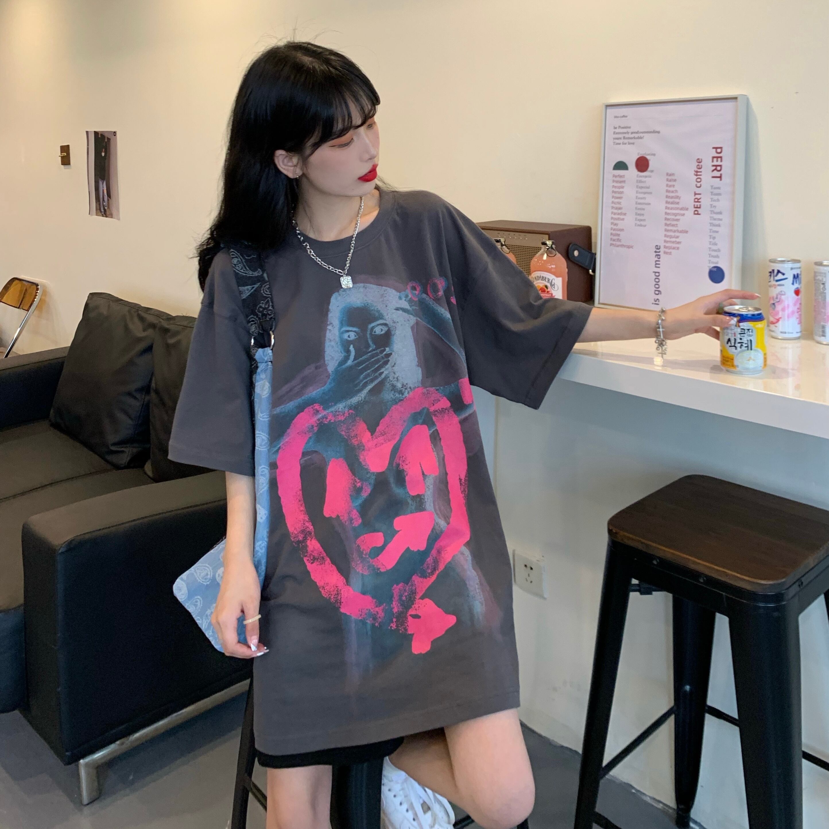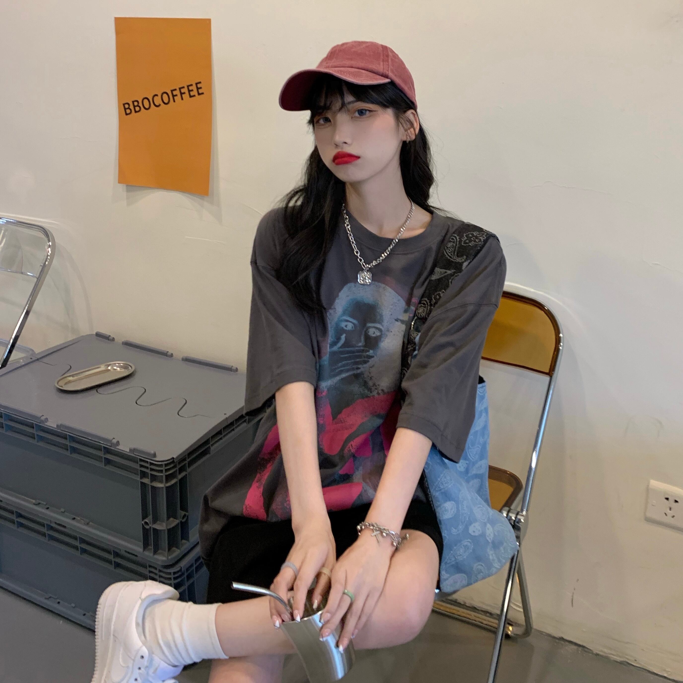 サマーグレーシャツ ルーズ半袖スリーブTシャツ ショート ハーフスリーブ ストリート 大人ガーリー スウィート キュート カジュアル 夏物 ヨーロピアン Brother_is_Style75444341921