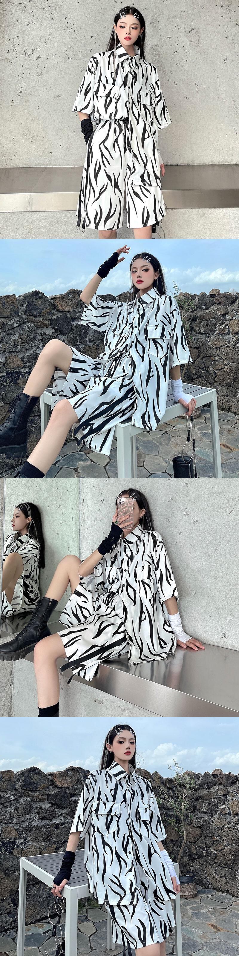 サマーパターンシャツ ハイウェストショーツ カジュアル 夏物 ブルマー Brother_is_Style54681720224