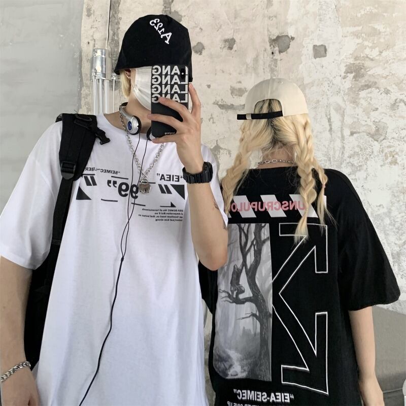 ブラックサマープリントTシャツ ルーズトップス コットン ストリート 夏物 ヨーロピアン Brother_is_Style82673222759