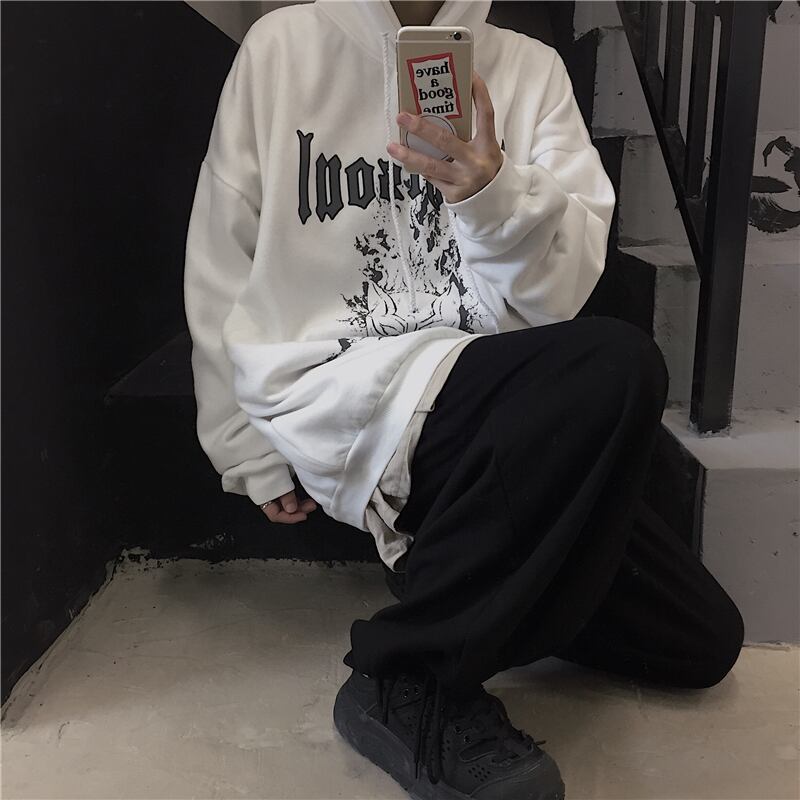 スプリングオータムスタンダードブラックホワイトルーズフードベルベットセーター ジャケット レトロ 春物 秋物 Brother_is_Style61967586186
