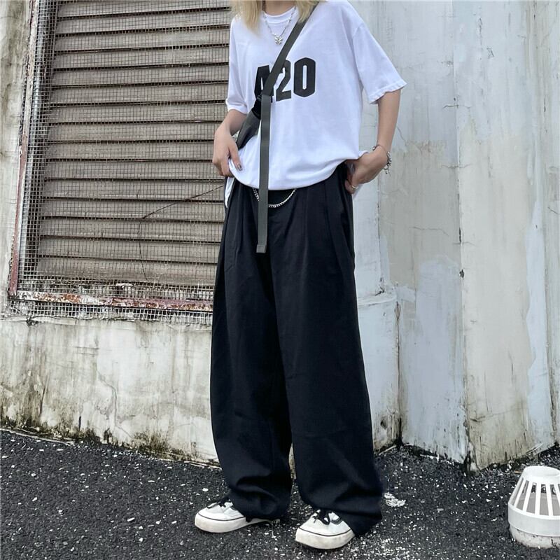 パンツ サマーブラック薄手ルーズハイウェストウェストワイドレッグカジュアル 夏物 ワイドパンツ Brother_is_Style17029536489