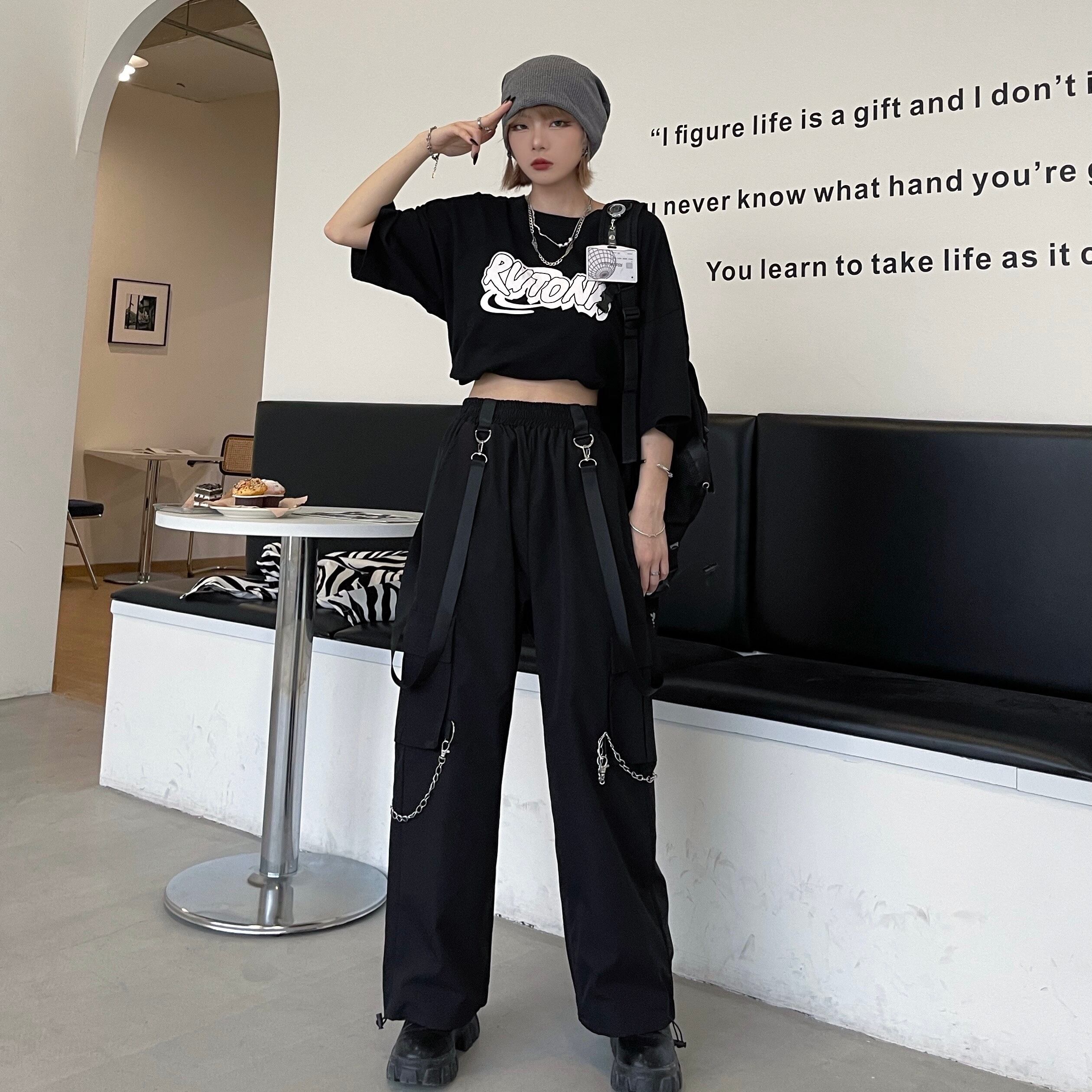 ギャザーパンツ レディースサマーハイウェストウェストオーバーオール ルーズブラックワイドレッグカジュアル ストリート 夏物 ワイドパンツ Brother_is_Style5048172847