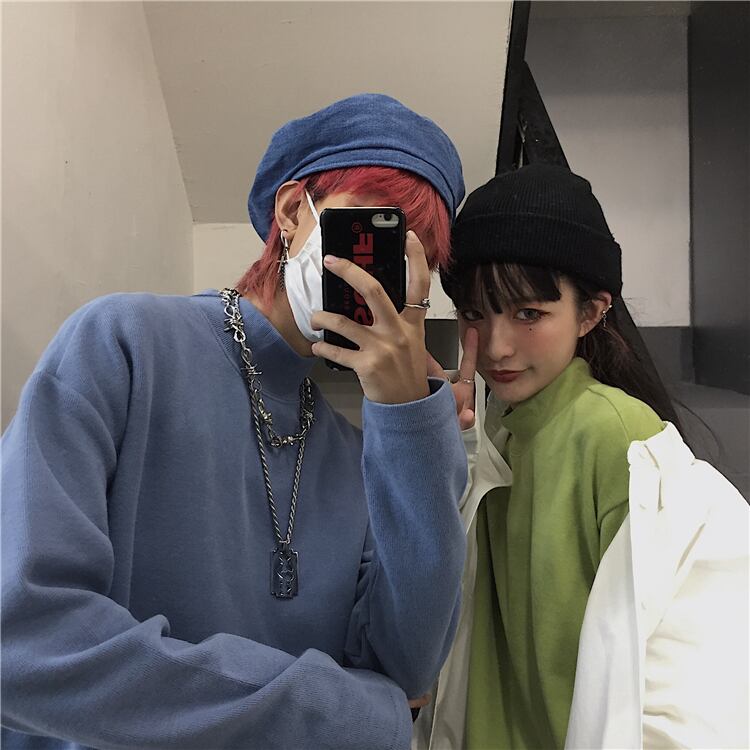 スプリングオータムスタンダードソリッド カラートップス ルーズセーター レディース ロング レトロ 春物 秋物 ソリッドカラー Brother_is_Style15337801932