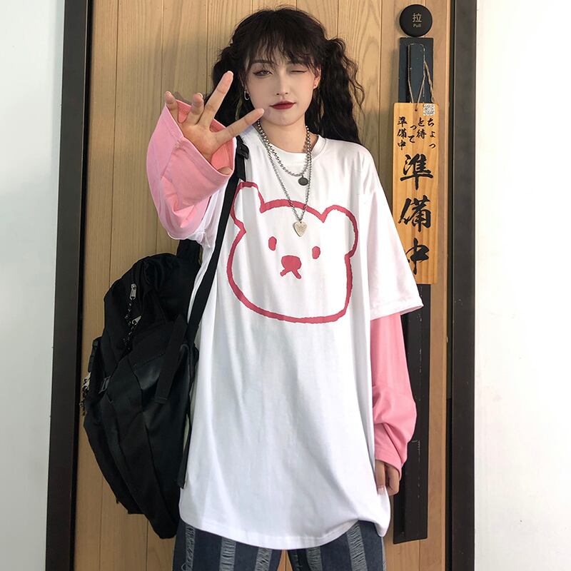 スプリングオータムトップス ルーズTシャツ ロング ピンク 大人ガーリー スウィート キュート カジュアル 春物 秋物 Brother_is_Style93363289898