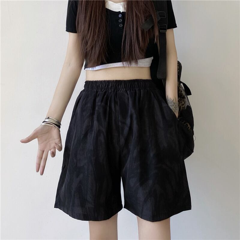 パンツ サマーダーク薄手シフォンルーズウェストワイドレッグショーツ ストリート 夏物 ブルマー ワイドパンツ Brother_is_Style95584544573