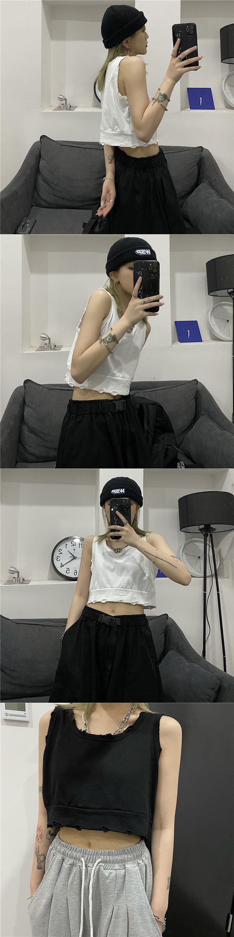 サマーショートクロップドブラウス ルーズノースリーブホワイト 夏物 Brother_is_Style29799107981