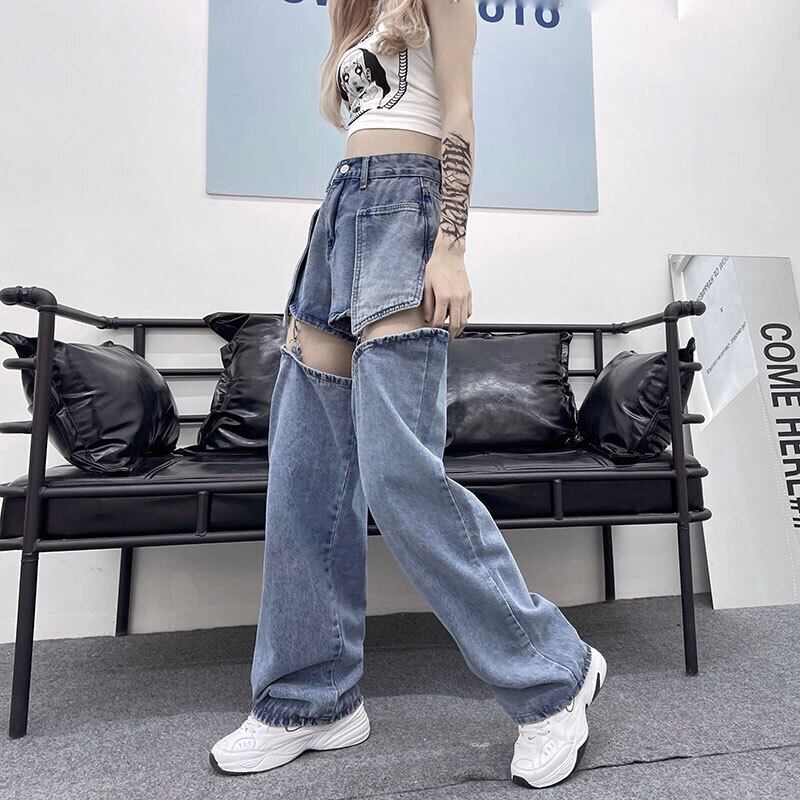 ジーンズ サマーワイドレッグパンツ ルーズハイウェストウェスト薄手 ストリート 夏物 ワイドパンツ Brother_is_Style80099274736