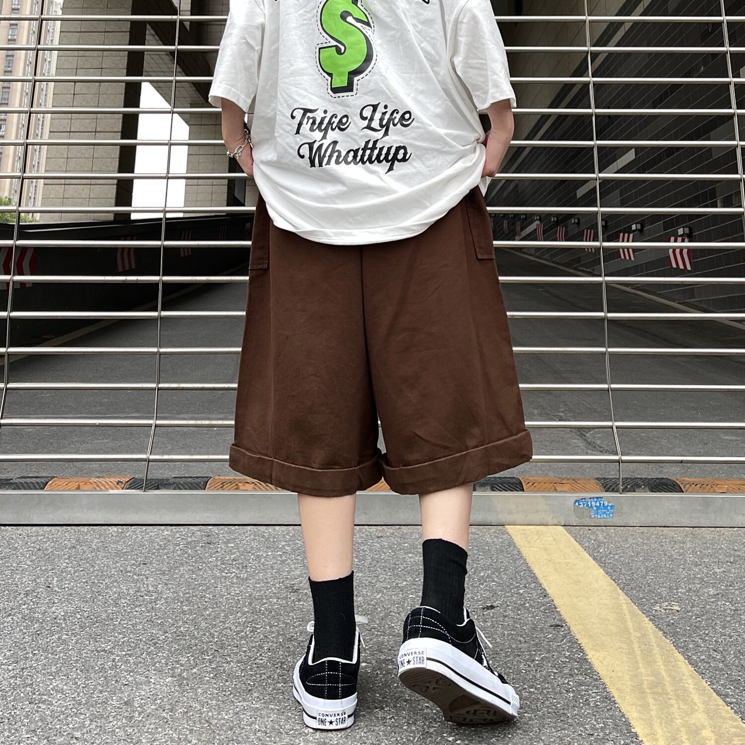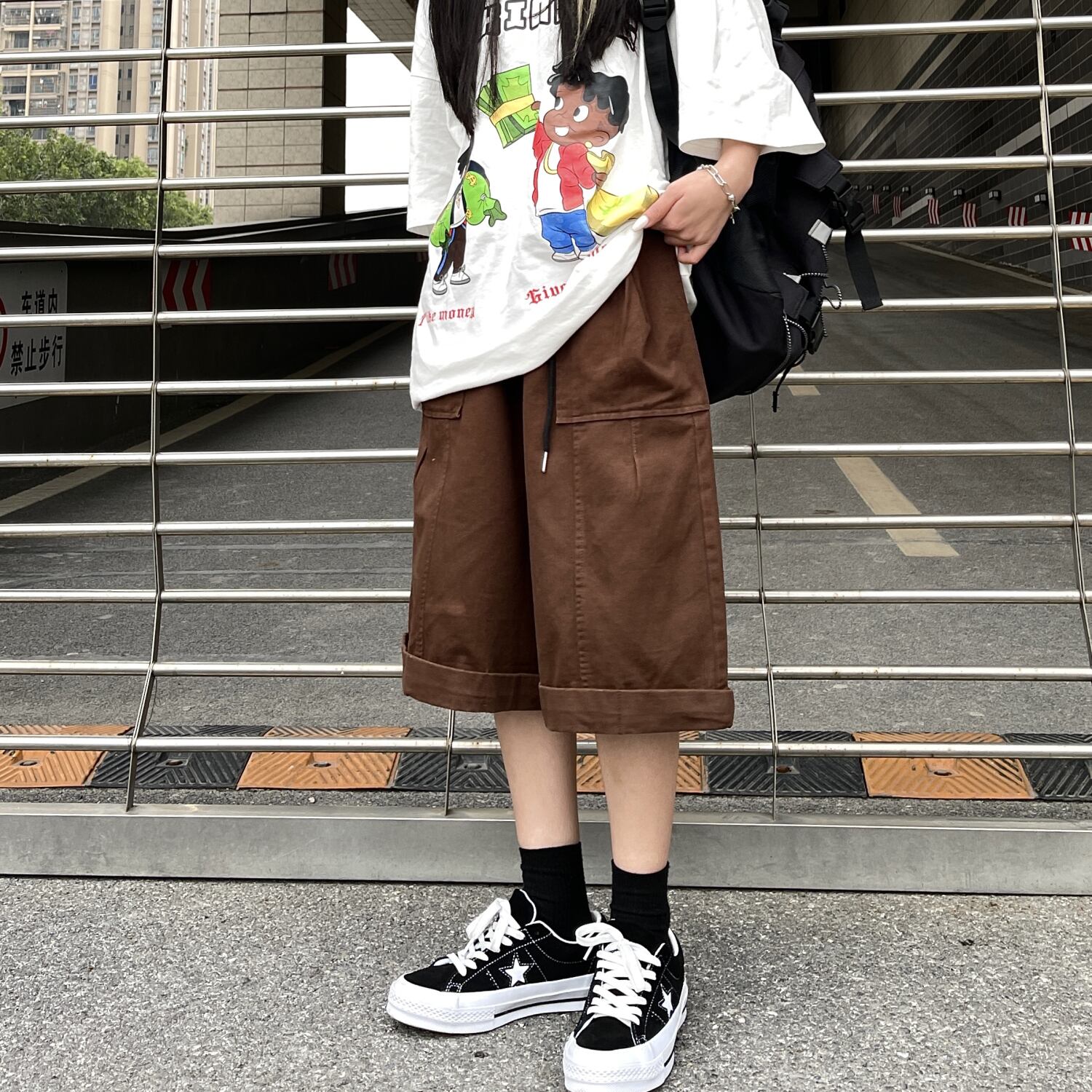 パンツ レディースサマースタンダードダークブラウンオーバーオール カジュアルルーズハイウェストウェストワイドレッグショーツ レトロ 夏物 ブルマー ワイドパンツ Brother_is_Style88368898172