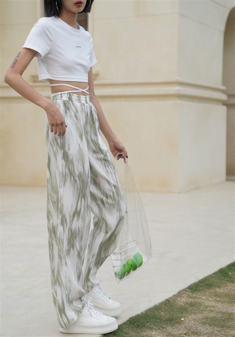 パンツ サマー薄手スタンダードルーズハイウェストウェストカジュアル レトロ ストリート 夏物 Brother_is_Style1060184600