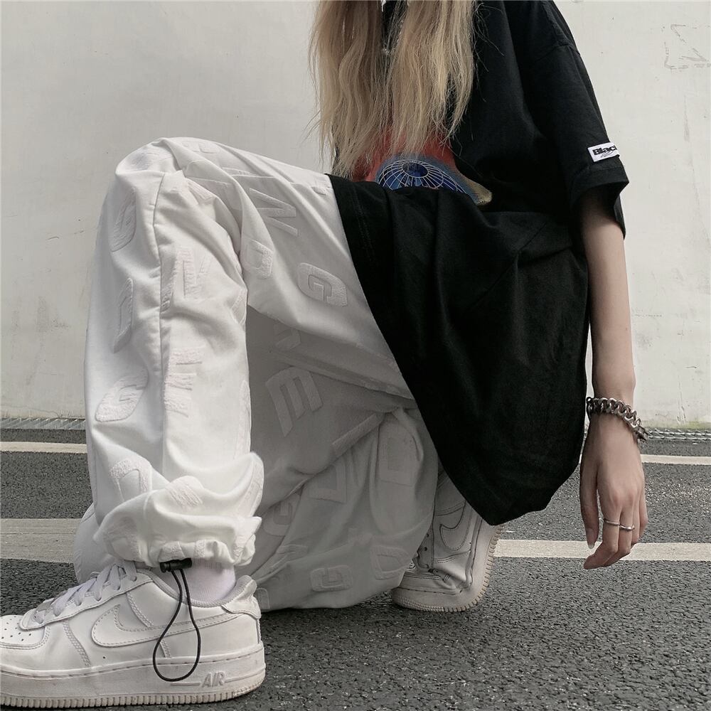 パンツ サマープリント柄ホワイトルーズハイウェストウェストワイドレッグ ストリート 夏物 ワイドパンツ Brother_is_Style19223854730