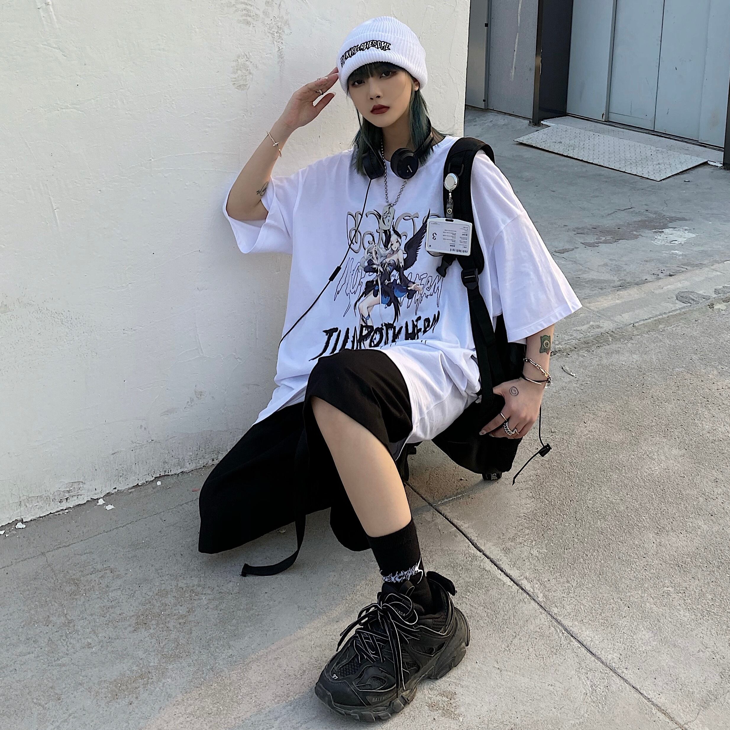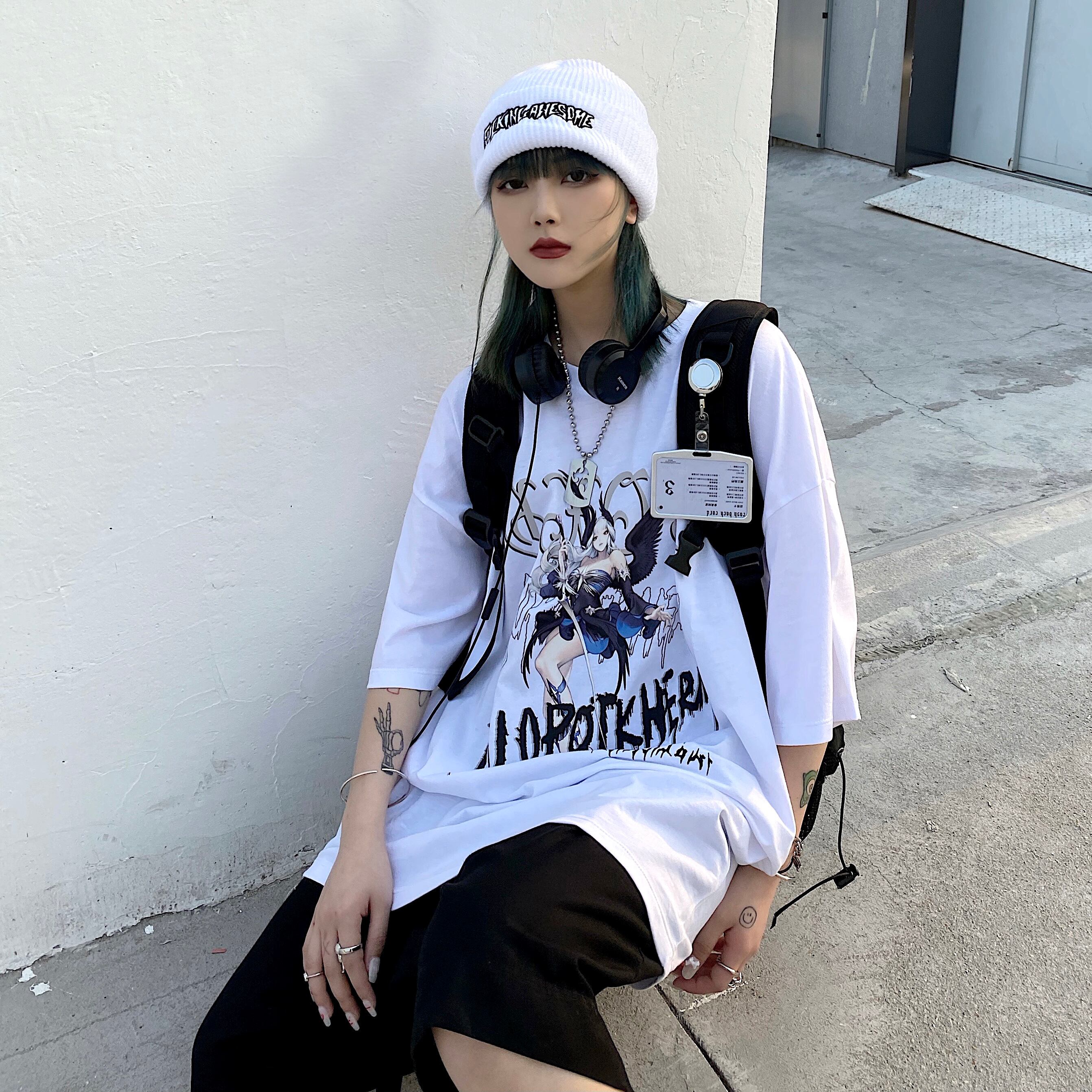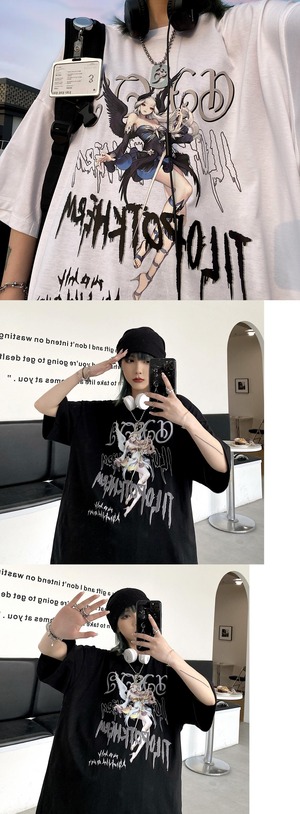 サマーブラックトップス ルーズTシャツ コットン ストリート 大人ガーリー スウィート キュート カジュアル 夏物 ヨーロピアン Brother_is_Style58239507236
