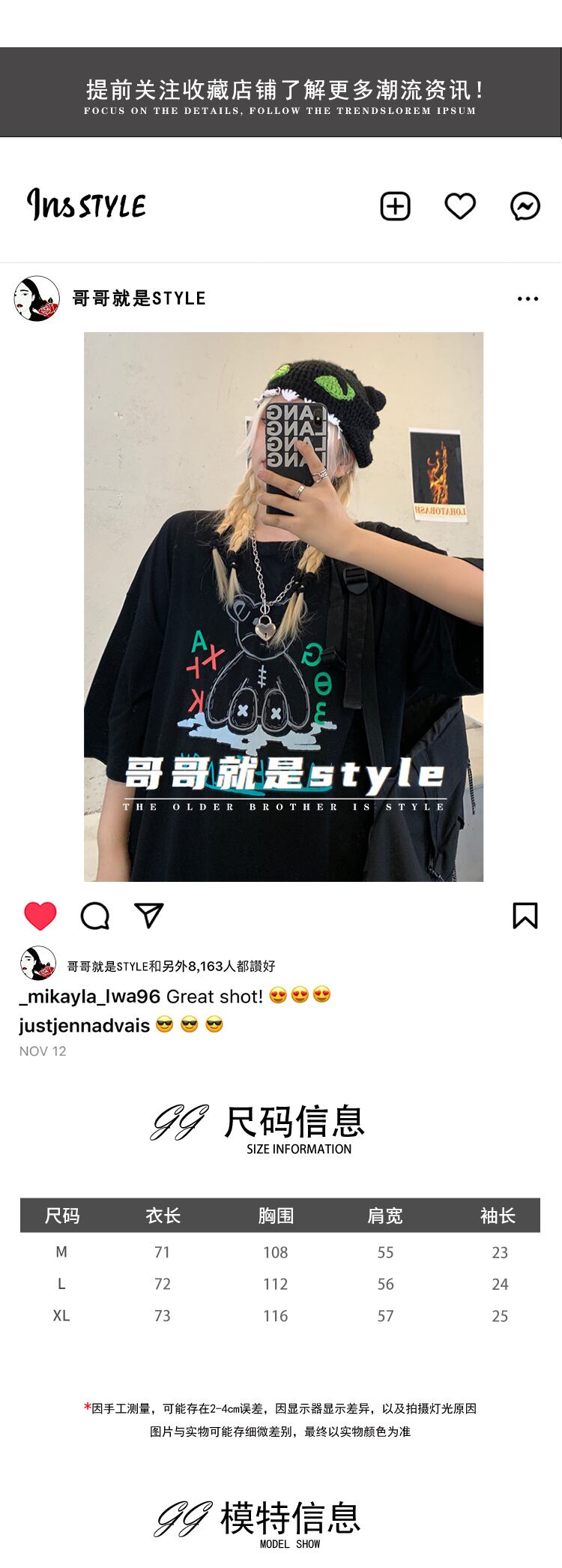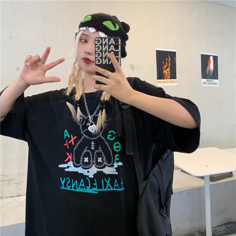 サマートップス ルーズブラックTシャツ ストリート 夏物 ヨーロピアン Brother_is_Style26457576433