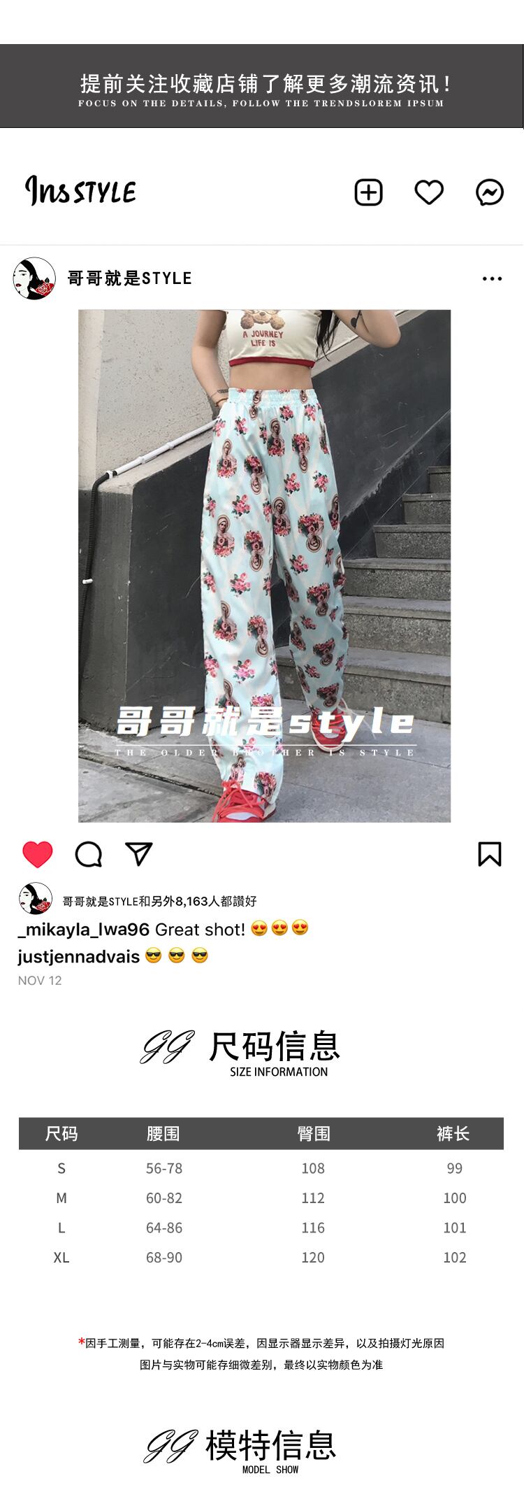 パンツ サマースタンダードプリントウェストルーズ薄手ワイドレッグ レトロ 夏物 ワイドパンツ Brother_is_Style17978368625