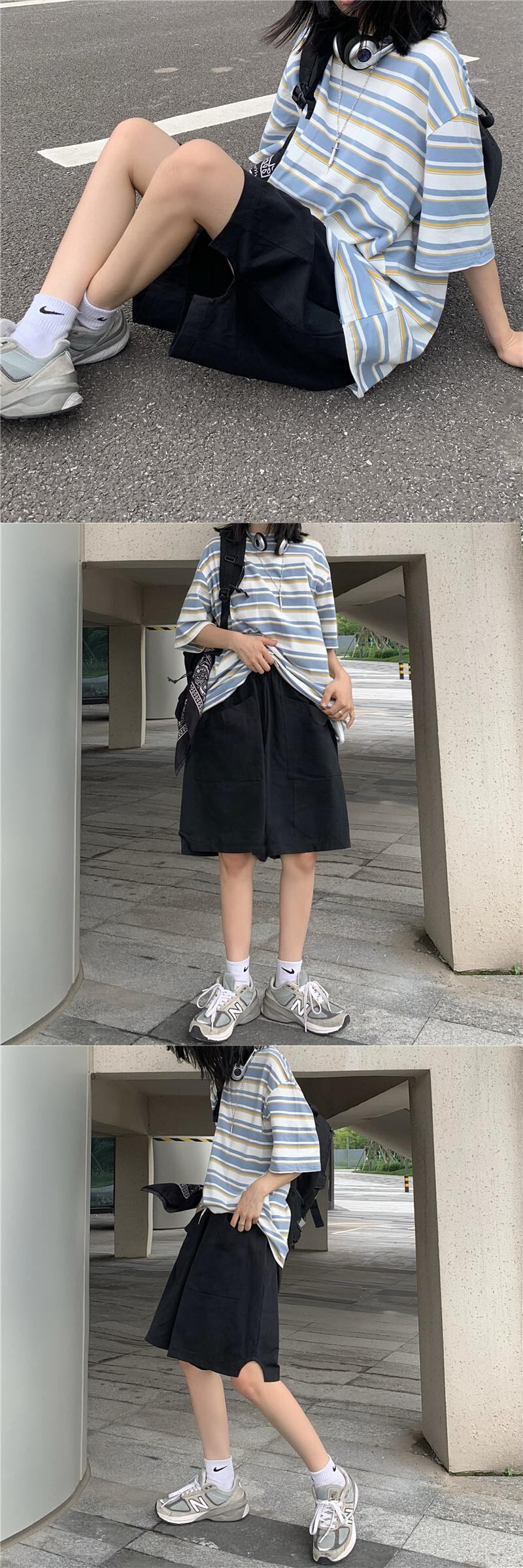 パンツ サマーハイウェスト薄手ショーツ ルーズブラックカジュアル 夏物 ブルマー Brother_is_Style91999739261