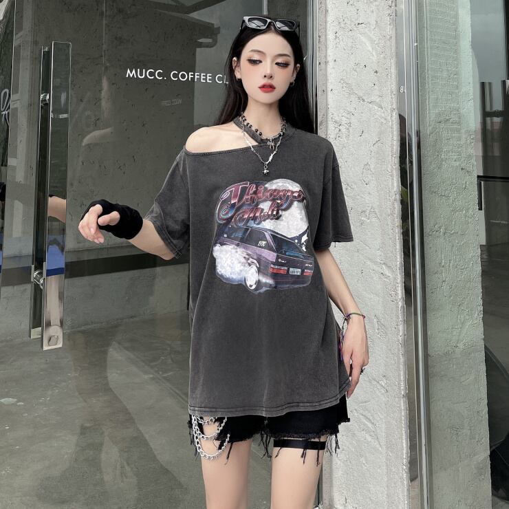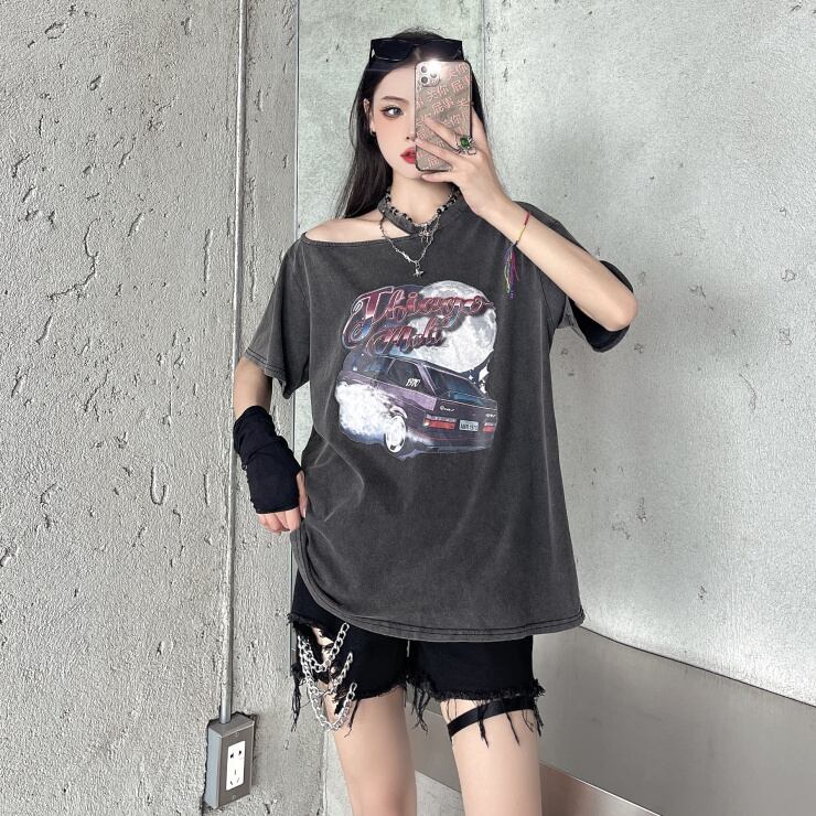 サマースタンダードプリントルーズブラウス レトロ 夏物 オフショルダー Brother_is_Style6915103788