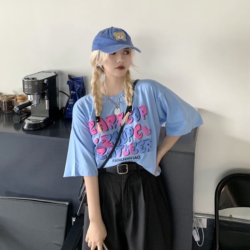 サマートップス ルーズブルーTシャツ ストリート 大人ガーリー スウィート キュート カジュアル 夏物 ヨーロピアン Brother_is_Style4153091887