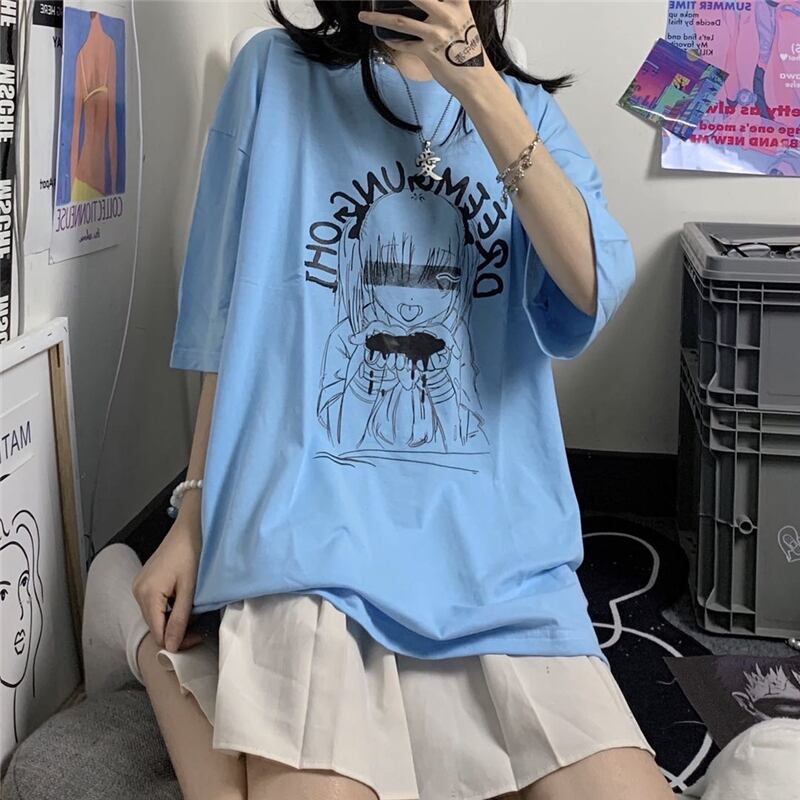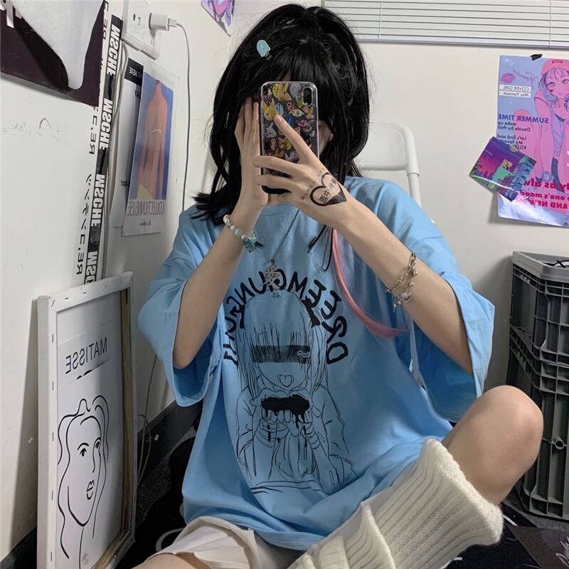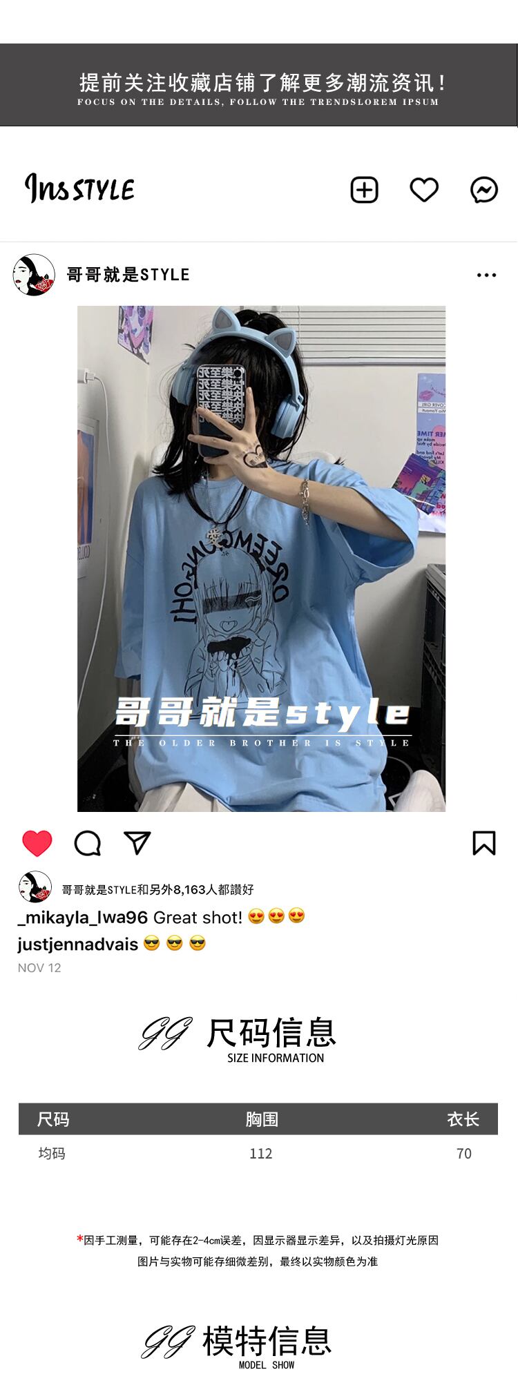 Tシャツ サマーブラックルーズラウンドネックトップス 夏物 Oネック Brother_is_Style41252000081