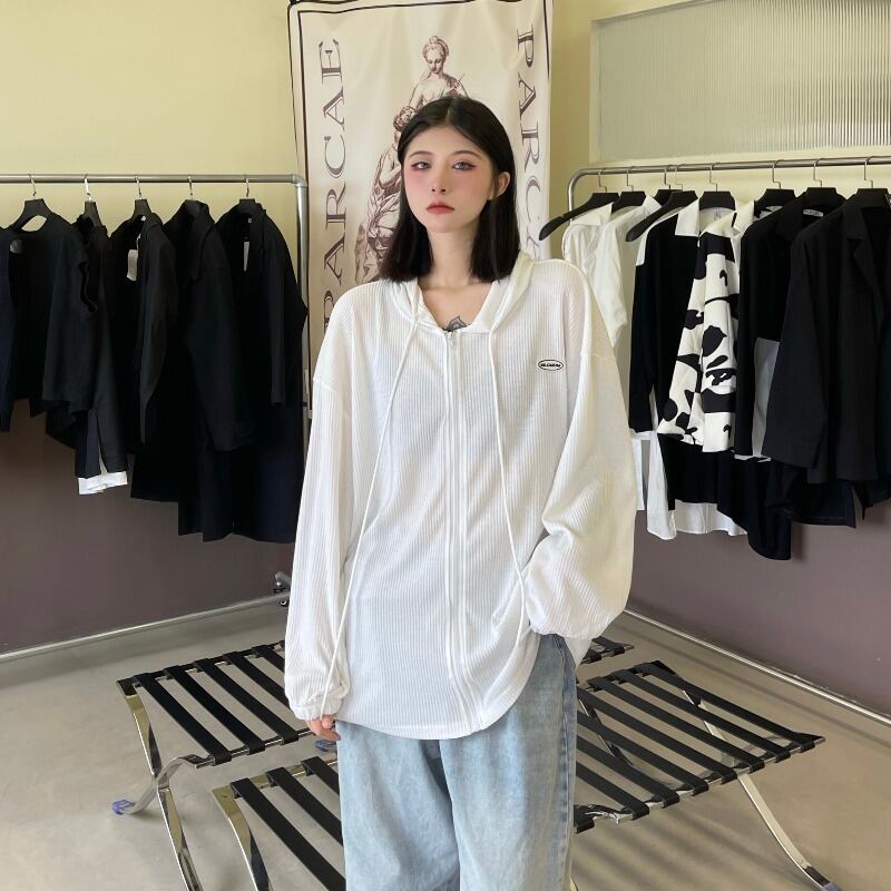 薄手レディースサマースタンダードルーズフードカーディガンジャケット ロング レトロ 夏物 Brother_is_Style73707861404