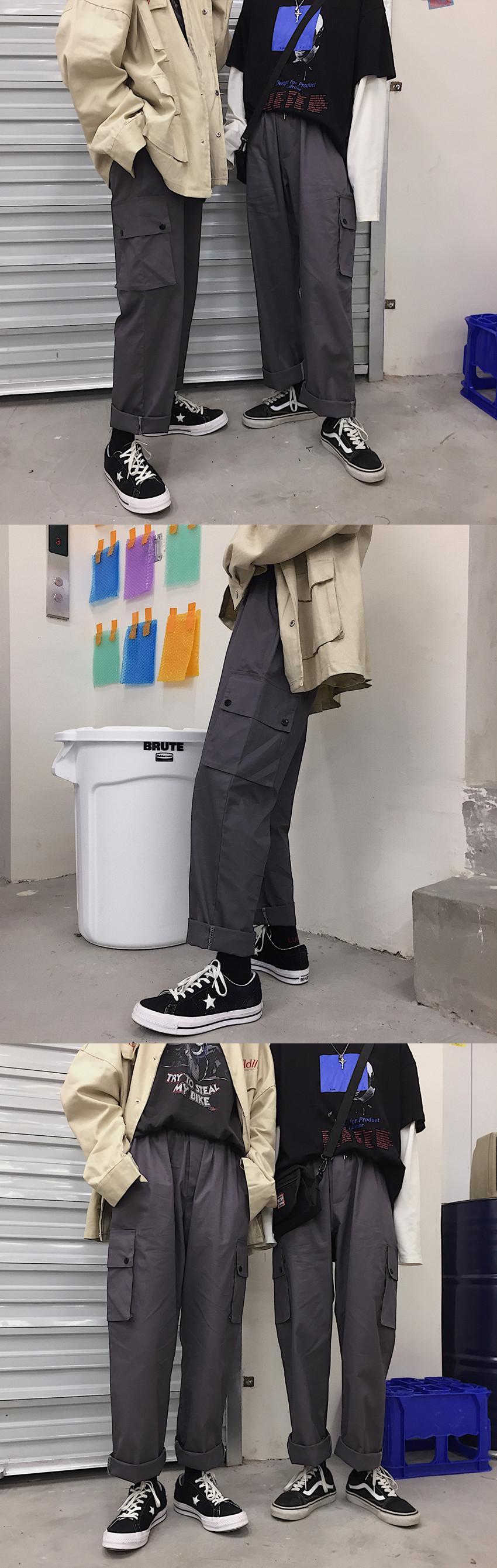 パンツ サマースタンダードグレーオーバーオール ルーズ薄手ハイウェストウェストワイドレッグカジュアル レトロ 夏物 ワイドパンツ Brother_is_Style23712479192