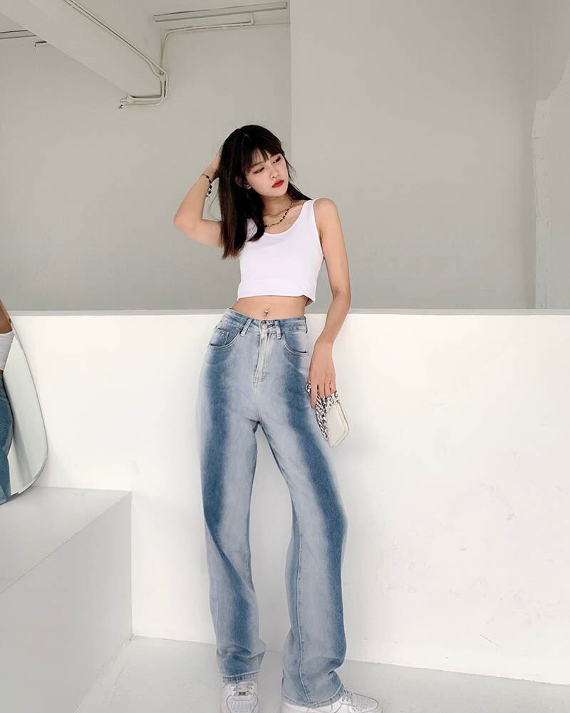 ジーンズ サマーパンツ ルーズハイウェストウェストワイドレッグ 夏物 ワイドパンツ Brother_is_Style58834985721