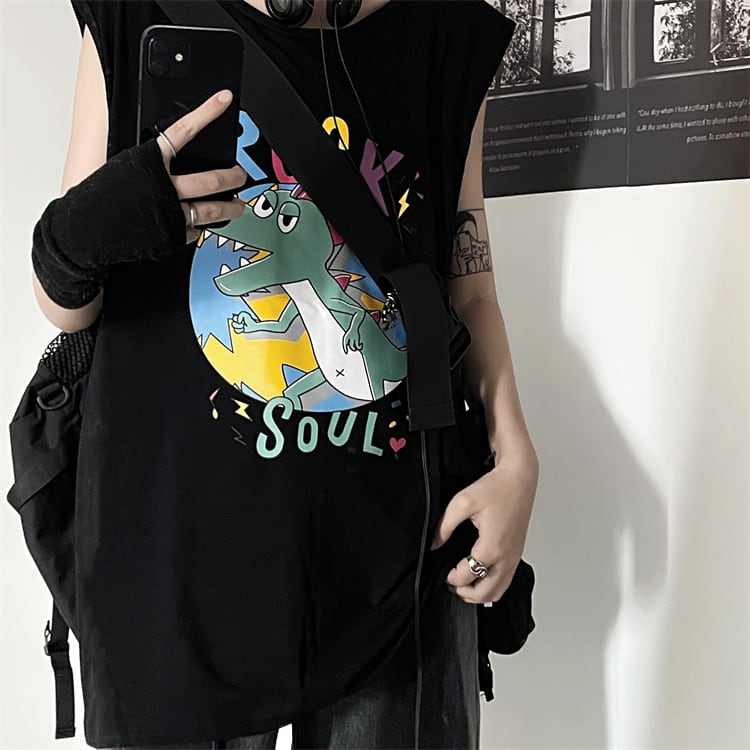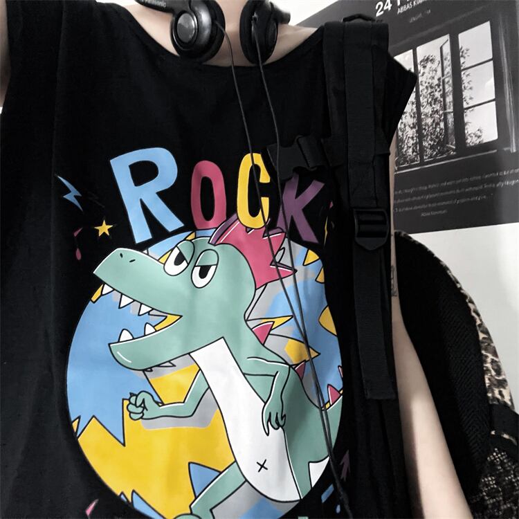 サマースタンダードトップス ルーズブラックノースリーブTシャツ レトロ 夏物 Brother_is_Style65648855080