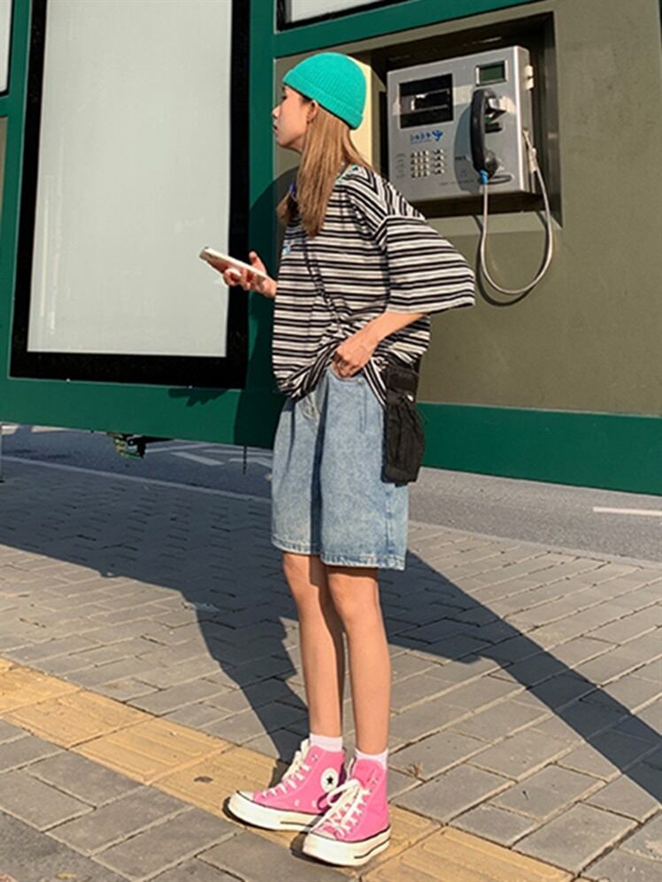 薄手パンツ レディースサマースタンダードAラインショーツ ハイウェストウェストジーンズ ルーズワイドレッグ レトロ 夏物 ブルマー ワイドパンツ Brother_is_Style26914525991