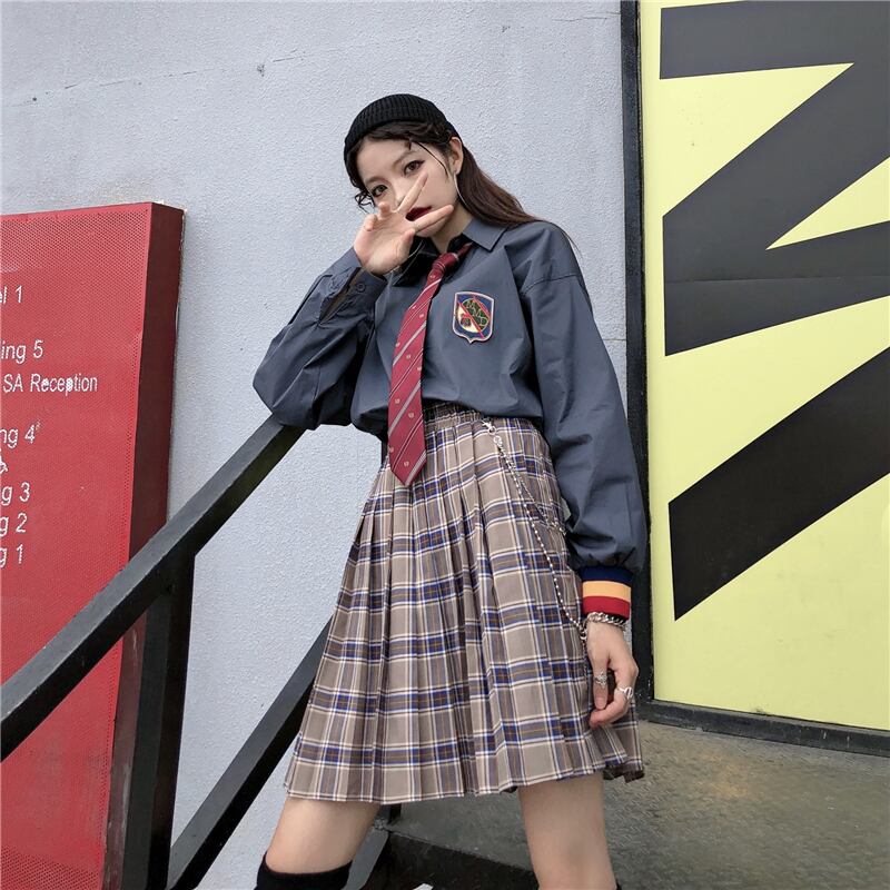 スプリングオータムスカート スタンダード格子柄ハイウェストウェストプリーツショート レトロ 春物 秋物 Brother_is_Style75280418611