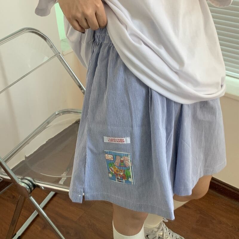 パンツ サマーブルーストライプルーズウェスト薄手ワイドレッグショーツ 夏物 ブルマー ワイドパンツ Brother_is_Style99491311757
