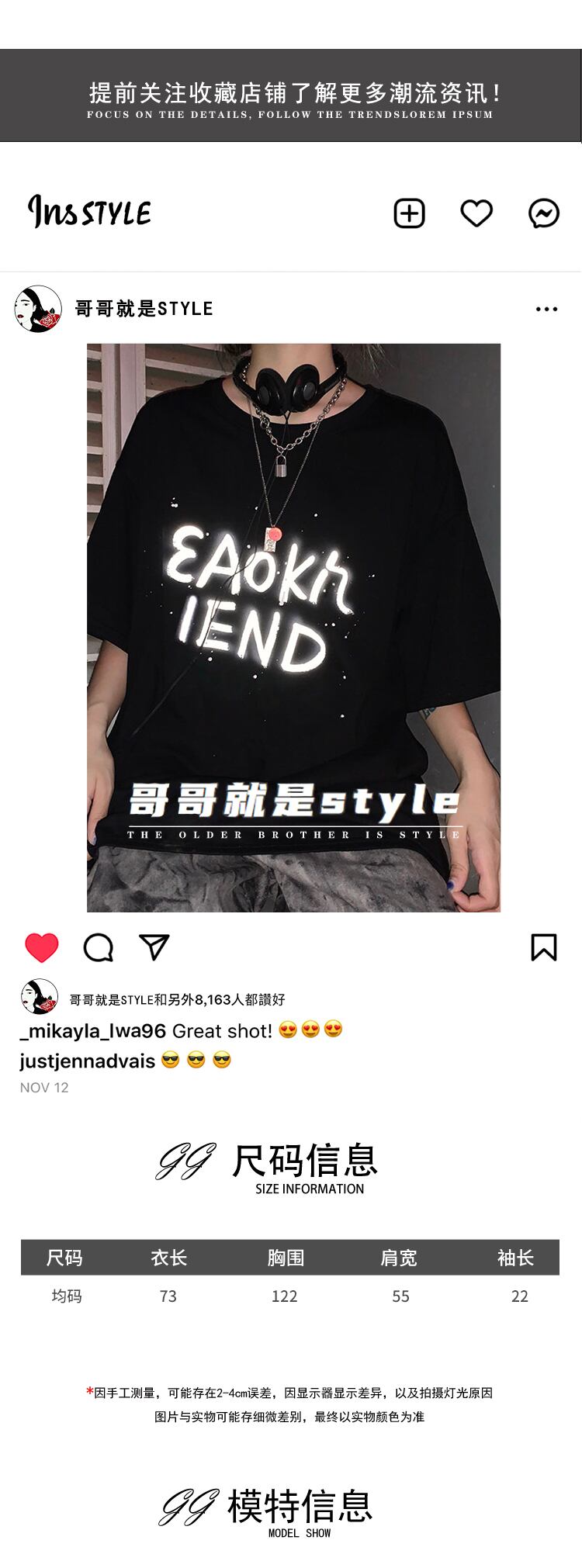 サマートップス ルーズブラックTシャツ 夏物 Brother_is_Style8280056018