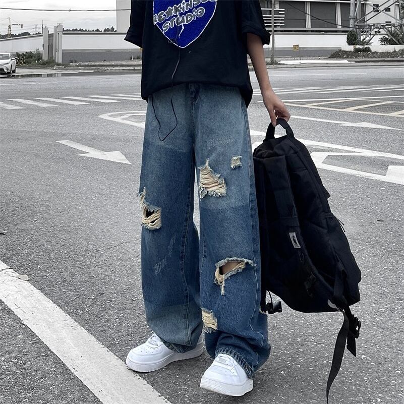 パンツ サマースタンダードルーズ薄手ハイウェストウェストワイドレッグジーンズ レトロ ストリート 夏物 ワイドパンツ Brother_is_Style50235286272