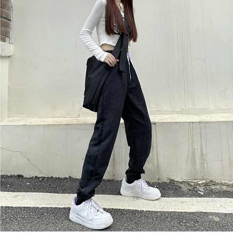サマースタンダードブラックパンツ ルーズ薄手ハイウェストカジュアル レトロ 夏物 Brother_is_Style52984678172