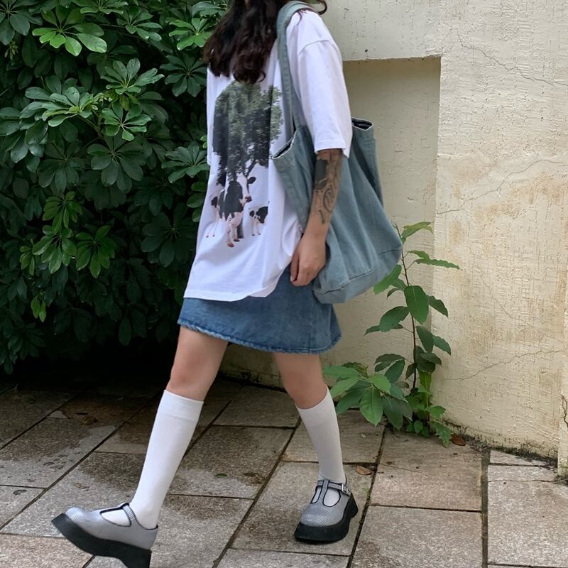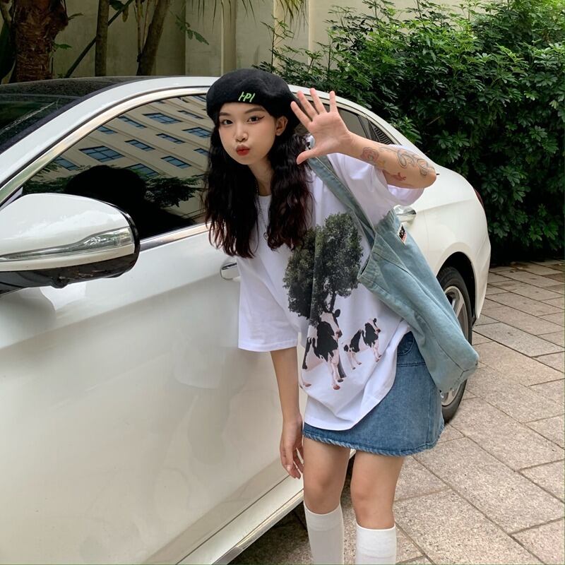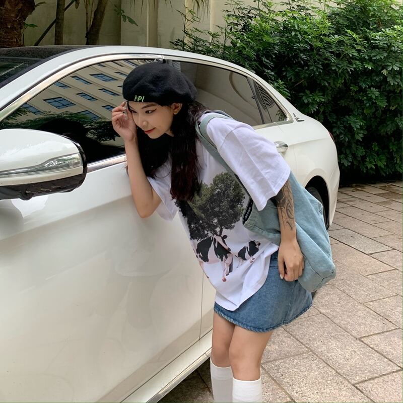 サマープリント柄Tシャツ ルーズホワイトトップス 夏物 Brother_is_Style93071133437